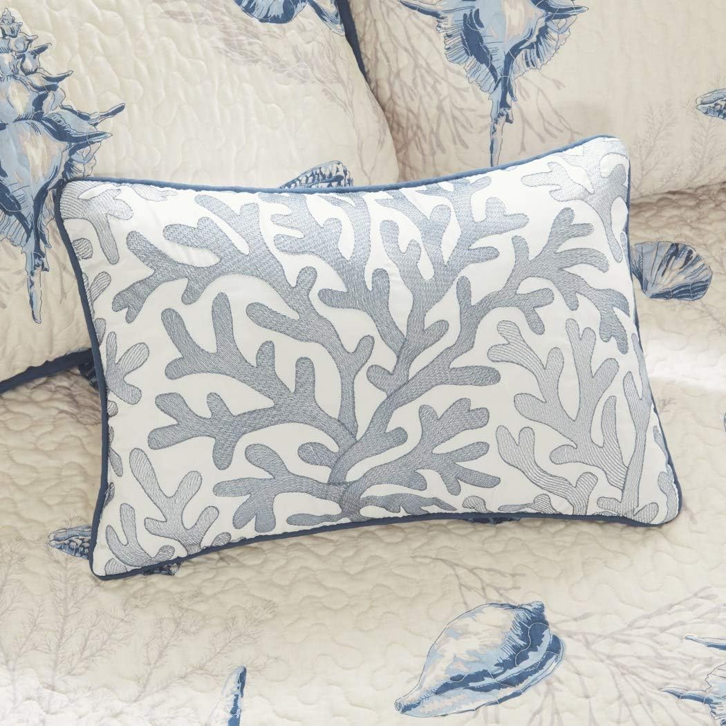 Bring a coastal vibe to your space with this 6-piece Daybed set. Made from a super-soft poly microfiber, the set features an assortment of seashells highlighted in light and dark blue on a sandy-ivory background. A coral motif in a taupe color is printed on the light ivory background that imitates sand to give another dimension. Reverses to a solid dark blue
