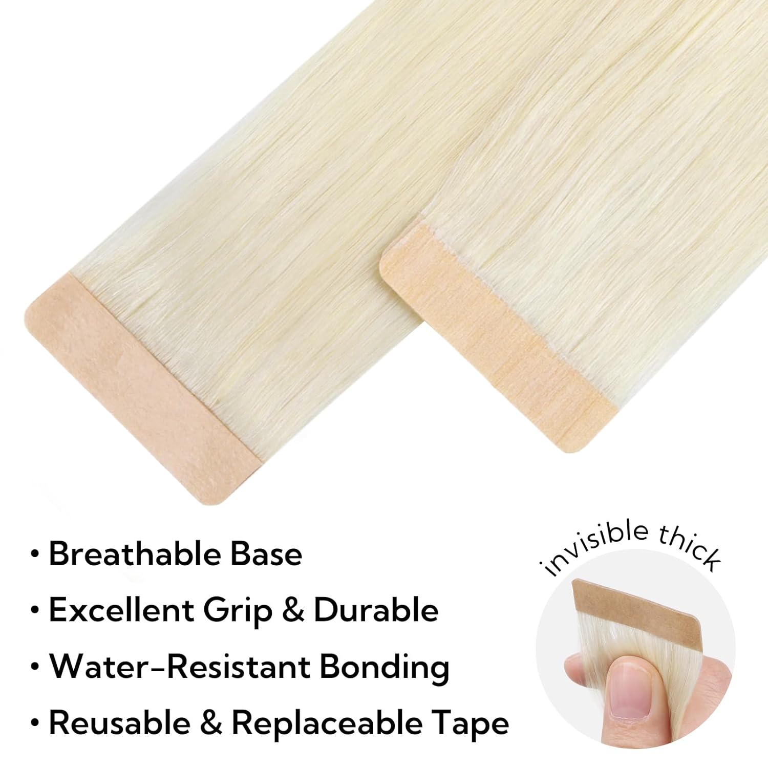 HOTBANANA remy tape in hair extensions human hair, no tangle, no shedding, can be permed and dyed, you can DIY any hairstyle you like. The tape in hair extensions are lightweight and comfortable, without pressure, easy to install and remove, perfectly fixed to the scalp without any discomfort or harm to the hair. Human hair tape in extensions make your hair look fuller and healthier. Easy to create fashionable hair colors without damaging your natural hair. Effortlessly increase the length to achieve the desired hairstyle. The length of HOTBANANA tape ins hair extensions are 10-26 inch, texture: Straight.