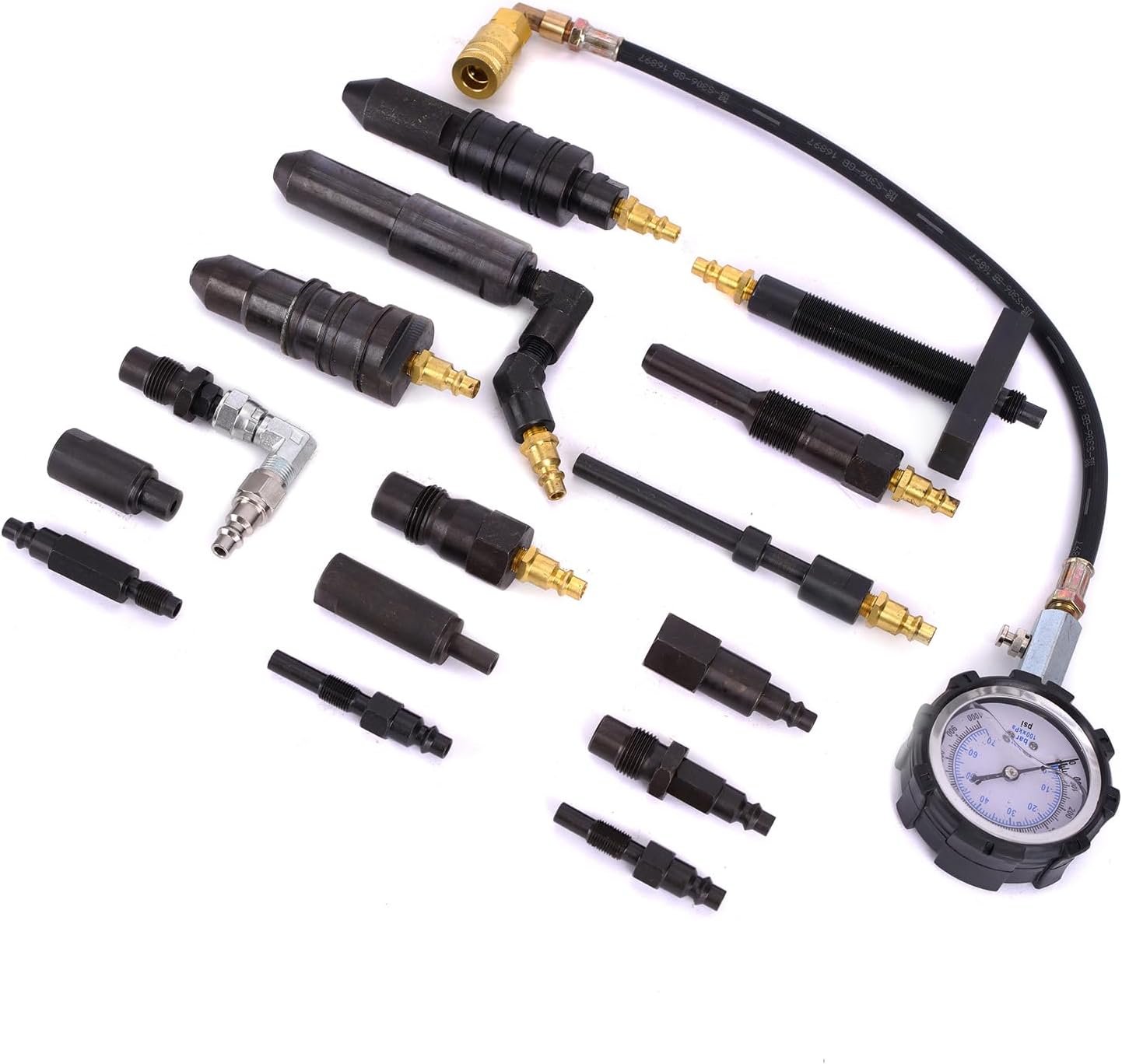 Car Application: For use on Cummins 5.9, Ford Powerstroke 6.0L, 6.4L, 6.7L, 7.3L (both styles) For International Navistar 6.9/7.3L For International Navistar 4.5L VT275, 6.0L VT365E, 6.4L MaxxForce 7 For Cummins V6, V8, V12, 855, 5.9L For Detroit Diesel 53, 71, 92, 110, 149, V53, V71 For GM Duramax 4.3/5.7/6.2/6.5L/6.6L For CAT D-336, 1674, 1676, 3406, 3408, 3412 For PERKINS 4.203, 4.236, 4.248, 6.354, 8.540 For Mercedes 12MM, 18MM, CASE, DEER, MACK, PERKINS, ONAN, Allis-Chalmers Interchange Part Number:VT01331 Product Details: ๐นDual scale 80 mm diameter Liquid Filled Gauge 0 - 1000 Lb/In and 0 - 70 bar, 14.5" long hose. Built in Check valve