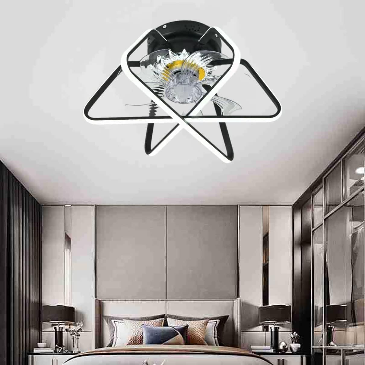 YUEGOO Ceiling Fans with Lamps,Led Ceiling Fan with Light 3 Colors Dimmable Silent Remote Control Fan Ceiling Lights Indoor Living Room Ceiling Fan Light